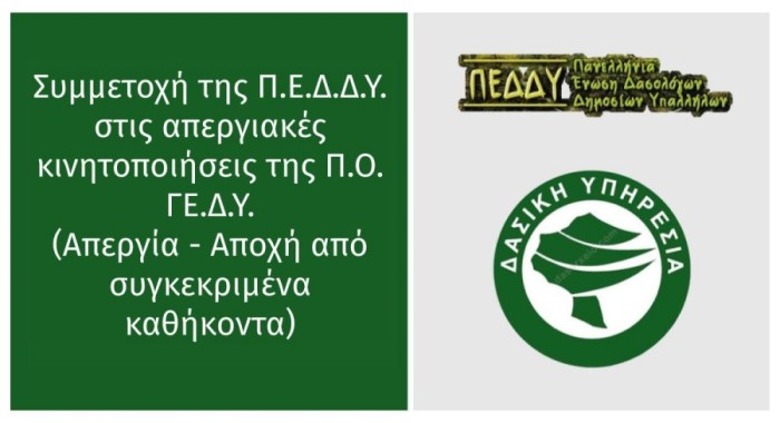 Ενημερωτική επιστολή της Πανελλήνιας Ένωσης Δασολόγων Δημοσίων Υπαλλήλων (ΠΕΔΔΥ) για την Απεργία – Αποχή από συγκεκριμένα καθήκοντα των Γεωτεχνικών κλάδων (διάρκεια απεργίας από τη Δευτέρα 15-4-2024 και έως 30-6-2024).