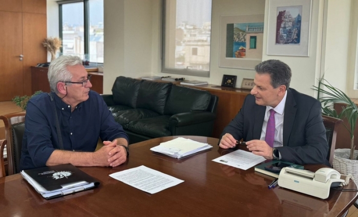 Συνάντηση του Υπουργού Περιβάλλοντος και Ενέργειας, κ. Θόδωρου Σκυλακάκη, με τον Πρόεδρο της Πανελλήνιας Ένωσης Δασολόγων Δημοσίων Υπαλλήλων (Π.Ε.Δ.Δ.Υ), κ. Νίκο Μπόκαρη, πραγματοποιήθηκε την Τρίτη, 21 Μαΐου 2024.