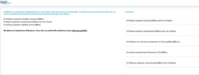 Στο ανωτέρω παράδειγμα, η σωστή απάντηση είναι το «Η Μαρία αγόρασε περισσότερα βιβλία από τον Ανδρέα».