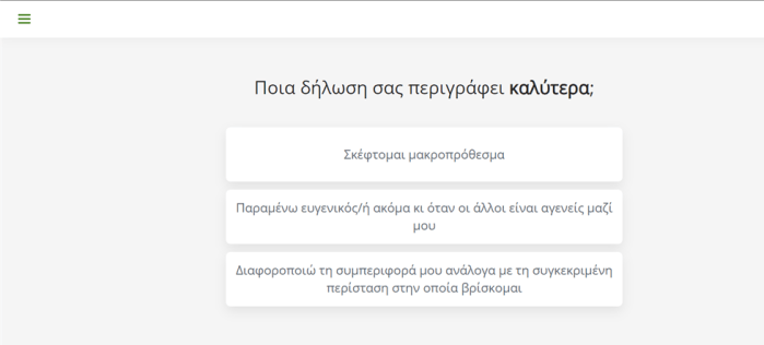 Στο ανωτέρω παράδειγμα, η σωστή απάντηση είναι το «Χαμηλότερα ποσοστά κατάθλιψης και αυτοκτονίας».