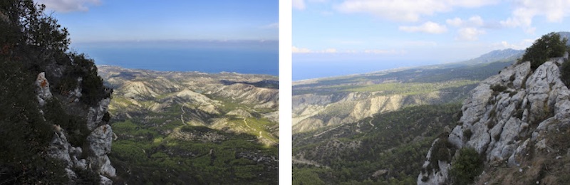Η βόρεια πλευρά του Πενταδάκτυλου πάνω απ’ την Κερύνεια και η θέα από τη νότια πλευρά του προς την πεδιάδα της Μεσαορίας (Instagram)