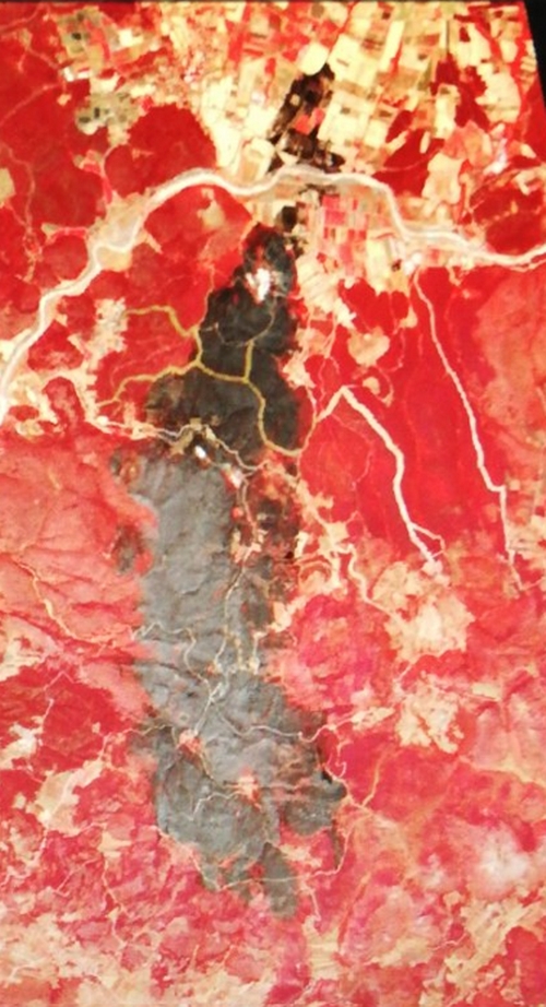 Από την πρώτη επεξεργασία των δεδομένων με την χρησιμοποίηση των αντίστοιχων δεικτών προέκυψε ότι η καμένη έκταση (δασικές εν γένει εκτάσεις) ανέρχεται στα 9.780,00 στρέμματα και απεικονίζεται στην παρακάτω εικόνα (με μαύρο χρώμα η καμένη έκταση). Θα ακολουθήσει ψηφιακή ανάλυση με τη συνδυαστική χρήση τηλεπισκόπησης και Γεωγραφικών Πληροφοριακών Συστημάτων (ΓΠΣ) προκειμένου για την λεπτομερέστερη απεικόνιση και την εξαγωγή των σχετικών συμπερασμάτων αναφορικά με: