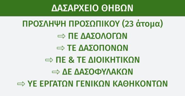 οι οποίοι θα απασχοληθούν στο Δασαρχείο Θηβών της Επιθεώρησης Εφαρμογής Δασικής Πολιτικής Θεσσαλίας – Στερεάς Ελλάδας, που εδρεύει στη Θήβα της Π. Ε. Βοιωτίας
