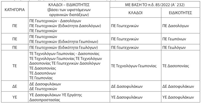 Κατάταξη δικαιούχων της Γενικής Γραμματείας Δασών του Υπουργείου Περιβάλλοντος και Ενέργειας