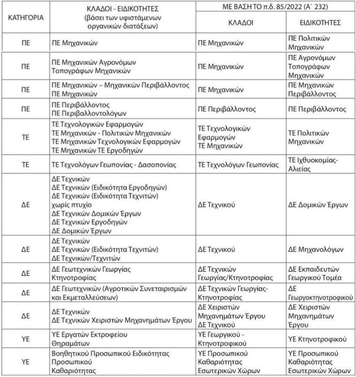 Στις παρακάτω παραγράφους κατατάσσονται οι υπάλληλοι που απασχολούνται στην Γενική Γραμματεία Δασών στις κατηγορίες του άρθρου 1 της παρούσας κατά κατηγορία εκπαίδευσης, κλάδο/ειδικότητα και Υπηρεσία.