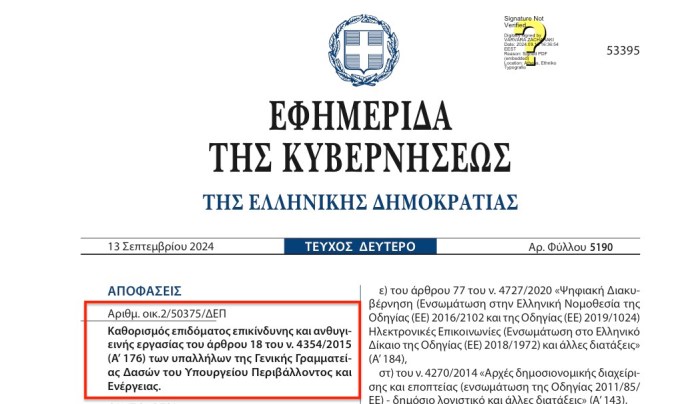 Ειδικότερα, η ΚΥΑ οικ.2/50375/ΔΕΠ/11.09.2024 (B’ 5190/13.09.2024) αναφέρει τα εξής: