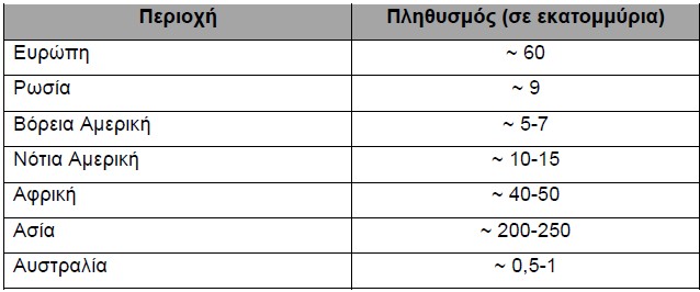 Επειδή η καταστροφή των δασών σχετίζεται άμεσα και με τον πληθυσμό της κάθε Ηπείρου, στον ακόλουθο πίνακα 2 παρουσιάζεται ο πληθυσμός της κάθε Ηπείρου της περίοδο του Μεσαίωνα.