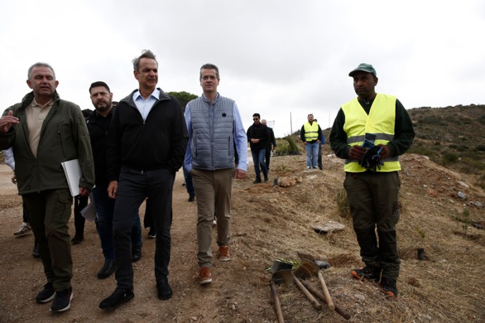 Ο Πρωθυπουργός ενημερώθηκε από τον Γενικό Διευθυντή Δασών και Δασικού Περιβάλλοντος του Υπουργείου Περιβάλλοντος και Ενέργειας Ευάγγελο Γκουντούφα για την πορεία των εργασιών φύτευσης συνολικά 990.000 δενδρυλλίων στην περιοχή της Νέας Πεντέλης προκειμένου να υποστηριχθεί η διαδικασία φυσικής αναδάσωσης, ενώ είχε την ευκαιρία να συνομιλήσει με τους εργαζόμενους στο συνεργείο αναδάσωσης και κατοίκους της περιοχής. Οι εργασίες χρηματοδοτούνται από πόρους του Ταμείου Ανάκαμψης με χρονοδιάγραμμα ολοκλήρωσης τον Ιούνιο 2026.
