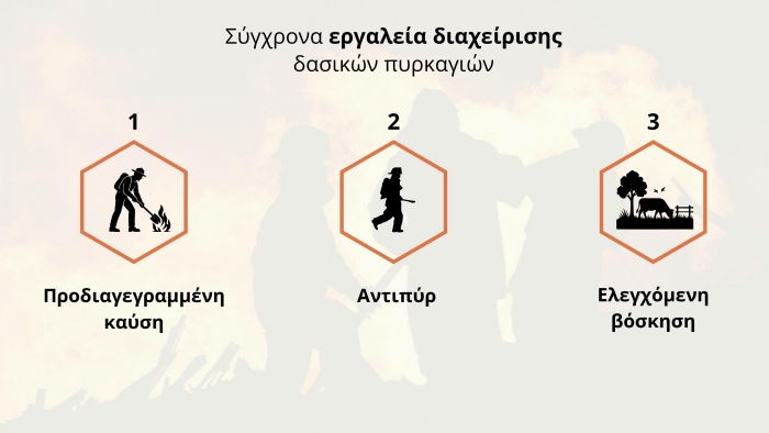 - την εισαγωγή μέτρων και μεθόδων προληπτικής πυροπροστασίας, καθώς και ρυθμίσεων για την πρόληψη και καταστολή των δασικών πυρκαγιών,