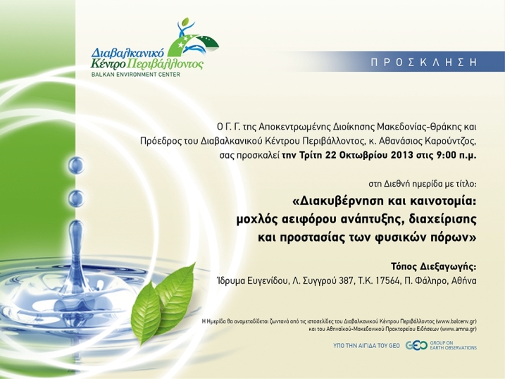 Διεθνής ημερίδα: «Διακυβέρνηση και καινοτομία: μοχλός αειφόρου ανάπτυξης, διαχείρισης και προστασίας των φυσικών πόρων»