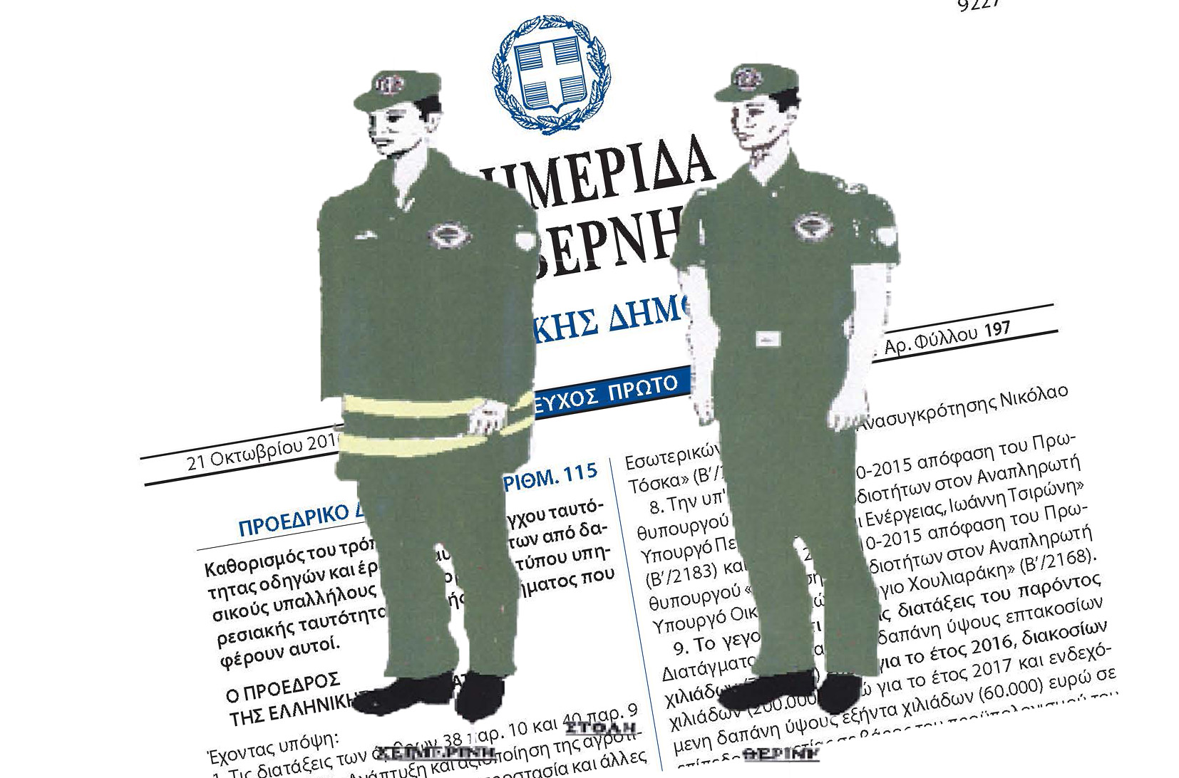 Με το Π.Δ. 115/2016 που εκδόθηκε (πιστή αντιγραφή αντίστοιχου σχεδίου του 2003) από το Υπουργείο Περιβάλλοντος, «θεσμοθετείται» χρήση υπηρεσιακών «στολών» ΜΟΝΟ