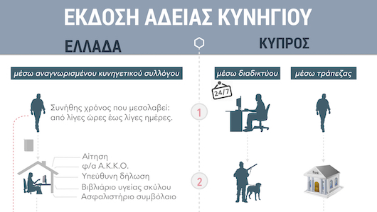 Δείτε σε ένα απλό γράφημα την διαδικασία έκδοσης/ανανέωσης άδειας κυνηγιού στην Ελλάδα και στη Κύπρο.