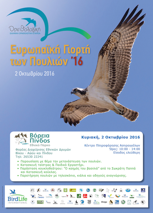 Ο Φορέας Διαχείρισης Εθνικών Δρυμών Βίκου – Αώου και Πίνδου συμμετέχει για 7η συνεχή χρονιά, στον εορτασμό της Ευρωπαϊκής Γιορτής των Πουλιών, διοργανώνοντας για το σκοπό αυτό δύο εκδηλώσεις