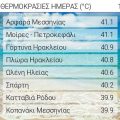 Στους 41 βαθμούς Κελσίου (C) έφτασε η μέγιστη θερμοκρασία στην Ελλάδα σήμερα το μεσημέρι