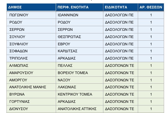 Διορισμός 3 δασοπόνων και 1 δασολόγου σε δήμους