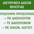 Η Διεύθυνση Δασών Π.Ε. Βοιωτίας θα διενεργήσει άμεσα προσλήψεις εποχικού προσωπικού σχέσης εργασίας ΙΔΟΧ για δύο (2) υπαλλήλους του κλάδου ΠΕ Γεωτεχνικών Ειδικότητας ΠΕ Δασολόγων, δύο (2) υπαλλήλους του κλάδου ΤΕ Δασοπόνων και έναν/μία (1) υπάλληλο του κλάδου ΠΕ Οικονομικού / Λογιστικού