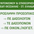 Η Διεύθυνση Συντονισμού & Επιθεώρησης Δασών της Ε.Ε.Δ.Π. Θεσσαλίας – Στερεάς Ελλάδας προκηρύσσει τις θέσεις δύο (2) ατόμων ΠΕ Δασολόγων, δύο (2) ατόμων ΤΕ Δασοπόνων και ενός (1) ατόμου ΠΕ Οικονομικού/Λογιστικού