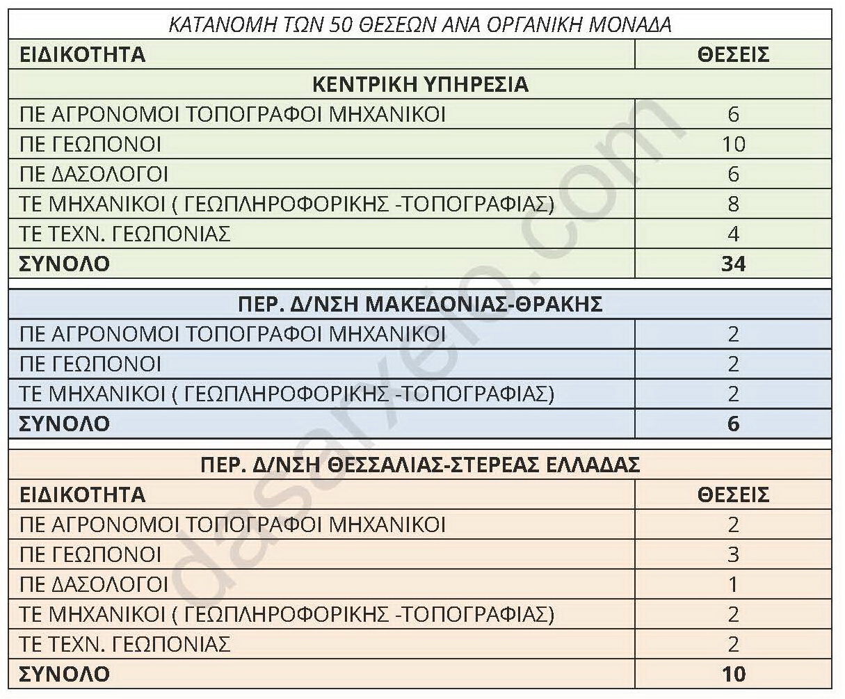 Προσλήψεις, αποσπάσεις και διάθεση προσωπικού από τα δασαρχεία στις διευθύνσεις δασών